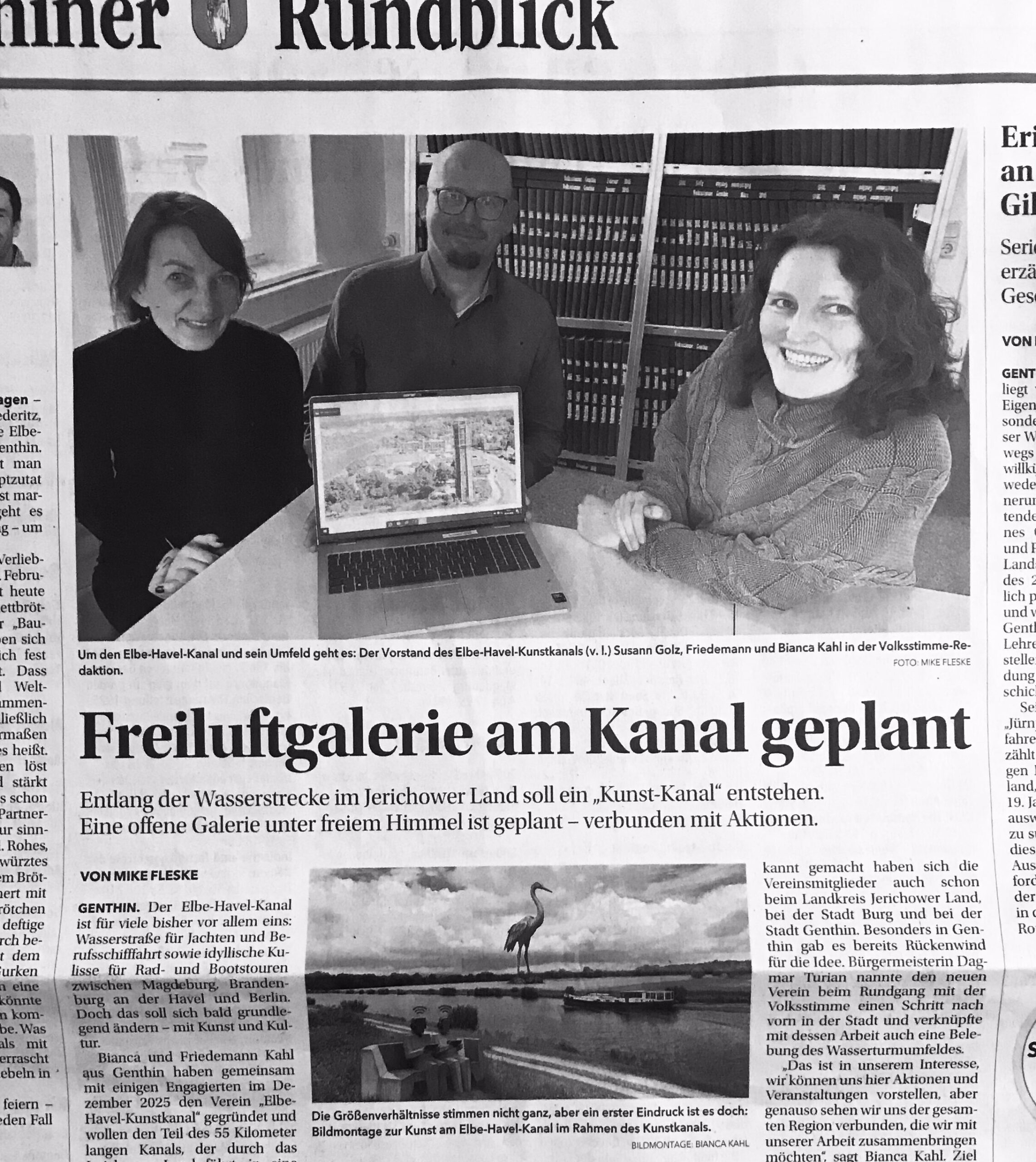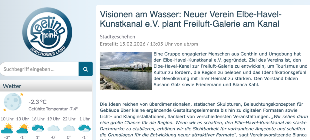 Dieses Wochenende haben die regionale Tageszeitung Genthiner Volksstimme und das Online-Medium meetingpoint jeweils mit einem großen Beitrag über unser Projekt Elbe-Havel-Kunstkanal und über unser Engagement als Verein berichtet. Herzlichen Dank an Mike Fleske und an die meetingpoint-Redaktion für die Veröffentlichungen!